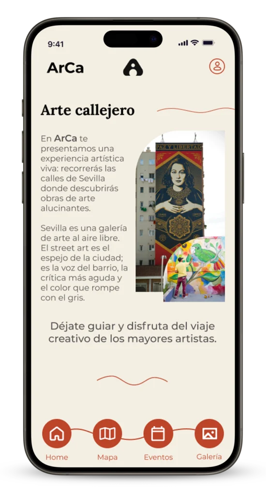 ArCa Nace como una iniciativa cultural para documentar, difundir y poner en valor el arte urbano de Sevilla, conectando a artistas, ciudadanía, turistas e instituciones a través de una aplicación interactiva.