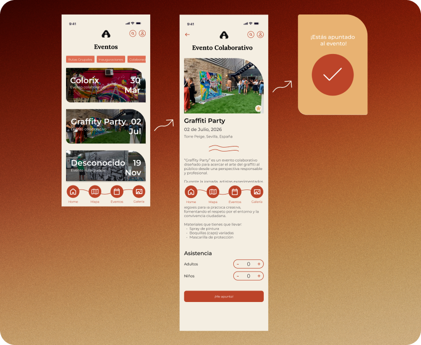 Además, el proyecto busca fomentar la participación cultural, permitiendo que los usuarios se impliquen en eventos, talleres o actividades relacionadas con el arte urbano. De esta forma, la aplicación no solo funciona como guía cultural, sino también como plataforma de conexión entre artistas, ciudadanos y eventos culturales.